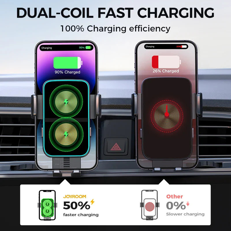 Dual Coil Car Phone Holder Automatic Fast Wireless Charger
