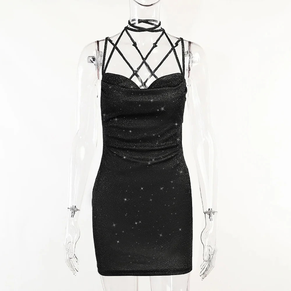 Glitter Cowl-Neck Lace Up Sequins Dress